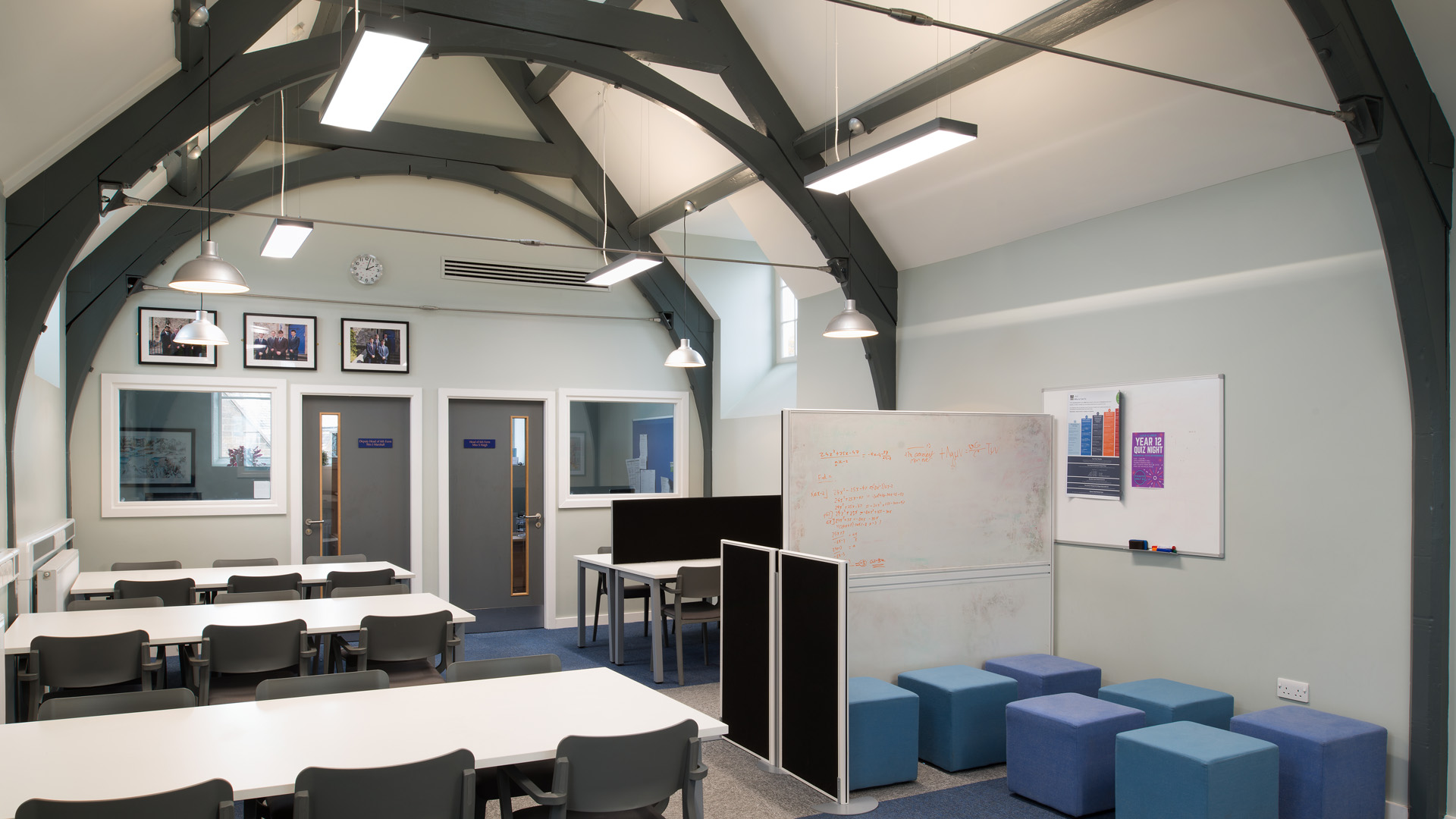 The project design transformed the Grade II listed building to create a new Sixth Form Centre and additional teaching spaces. The project reconfigured the Old School House from dated communal boarding dormitories with shower blocks, into state-of-the-art study rooms and seminar spaces.